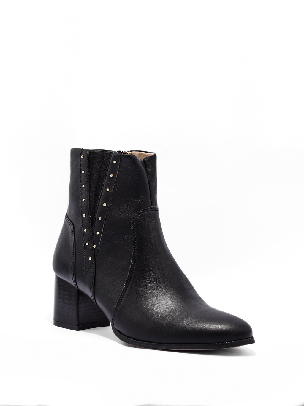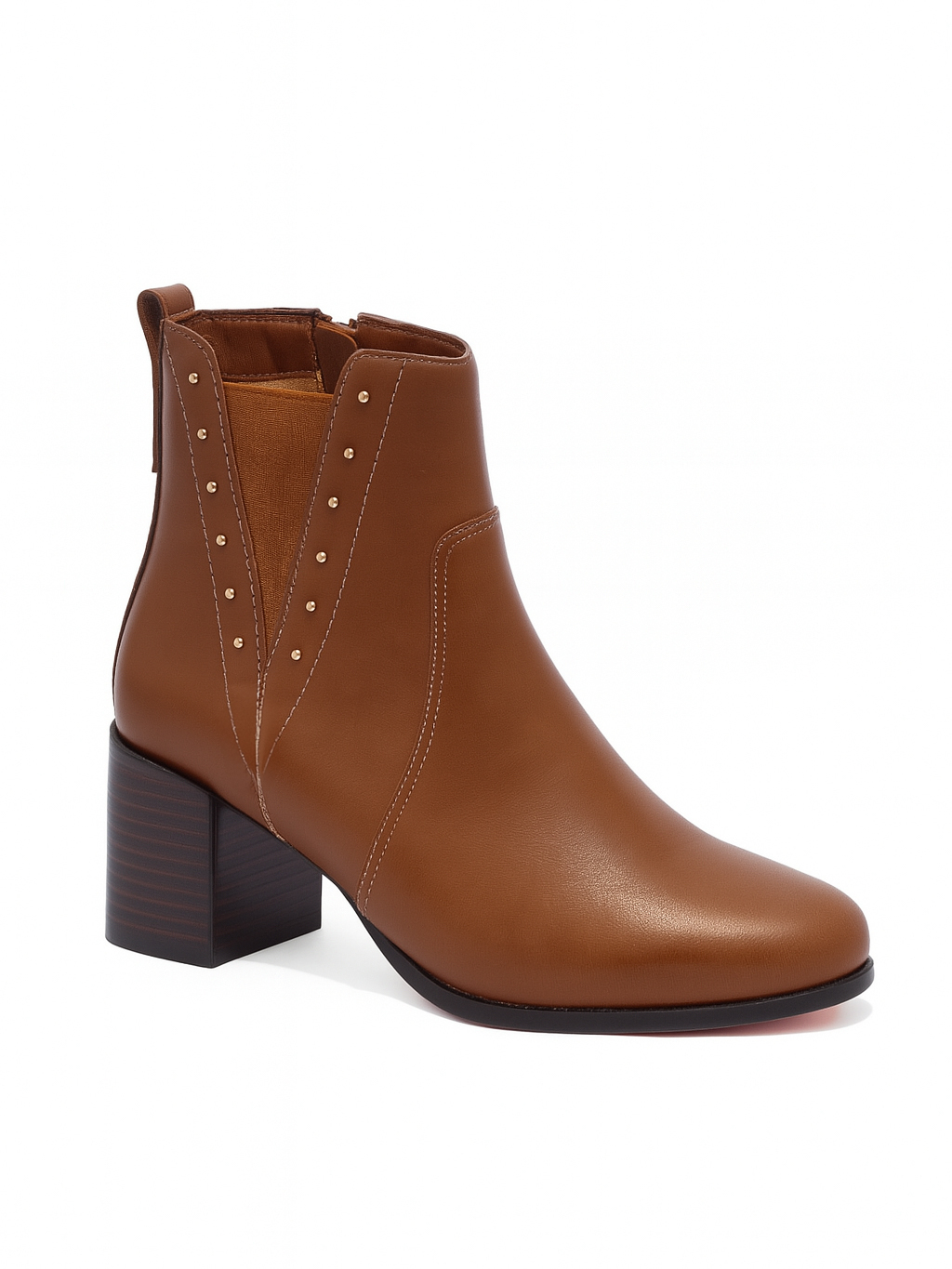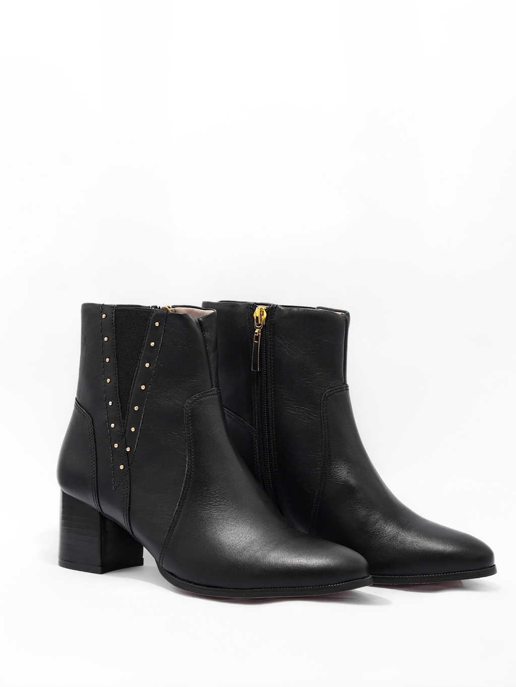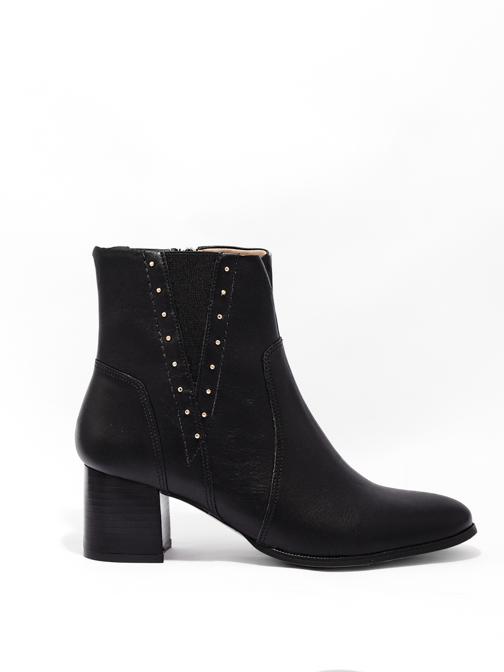 Conforto, estilo e versatilidade em uma só peça. Esta bota em couro legítimo traz design contemporâneo, destacando o elástico lateral com aplicação de tachas metálicas delicadas.